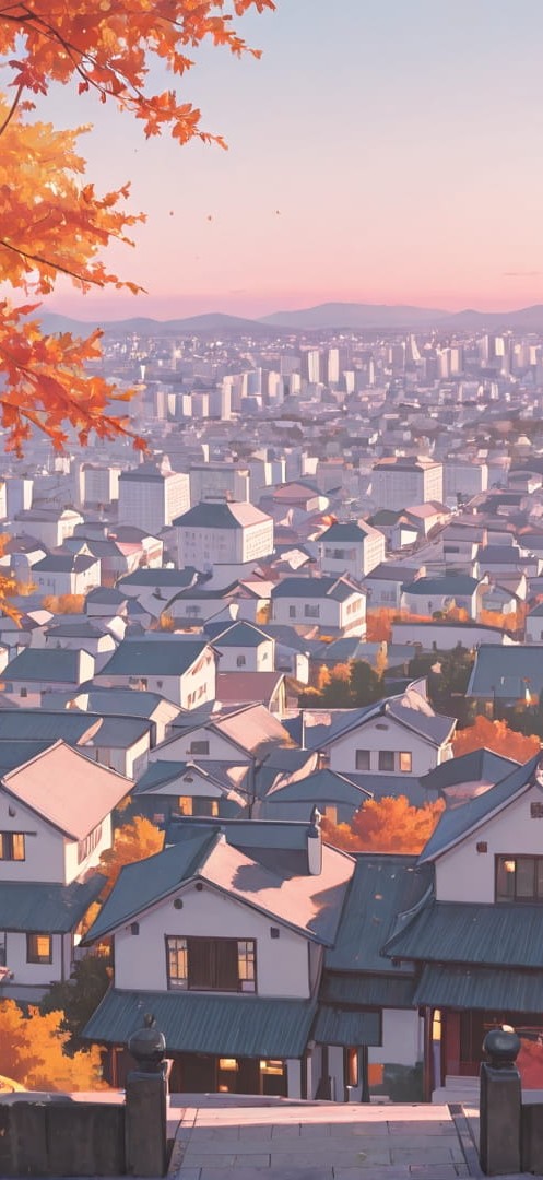 Pink Afternoon City USA smartphone wallpaper free download, vertical 16:9 format, Pink, Afternoon, City, Autumn 001