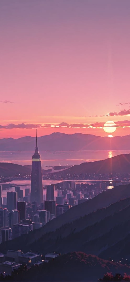 Pink Sunset Mountain USA smartphone wallpaper free download, vertical 16:9 format, Pink, Sunset, Mountain, Summer 001