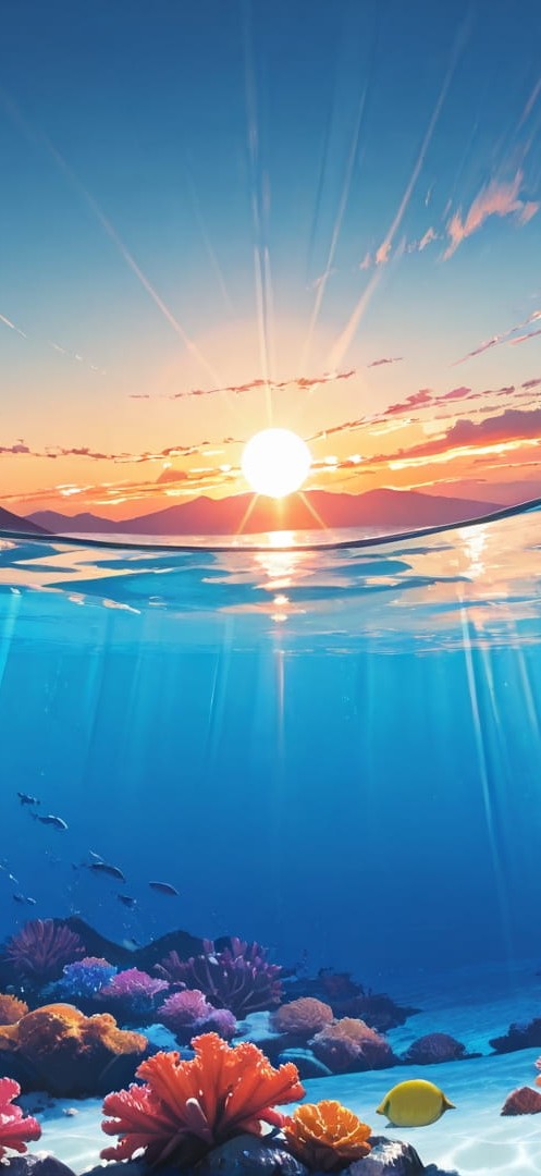 Blue Sunset Mountain Underwater | 1920×1080 | 16:9 | Free smartphone wallpaper