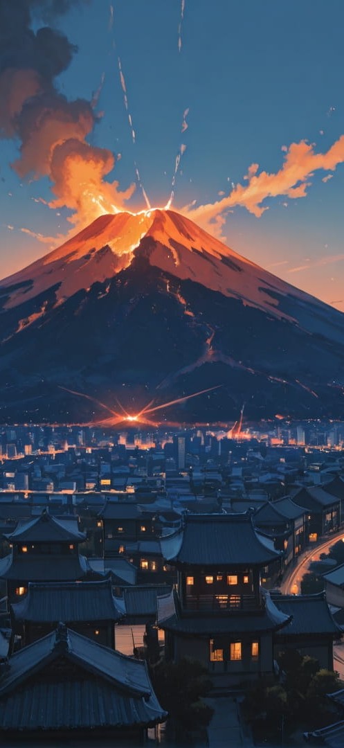 Blue Afternoon City Volcano | 1920×1080 | 16:9 | Free smartphone wallpaper