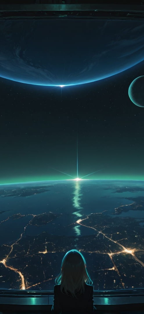 Green Night City Zenith smartphone wallpaper free download, vertical 16:9 format, Green, Night, City, Spring 001