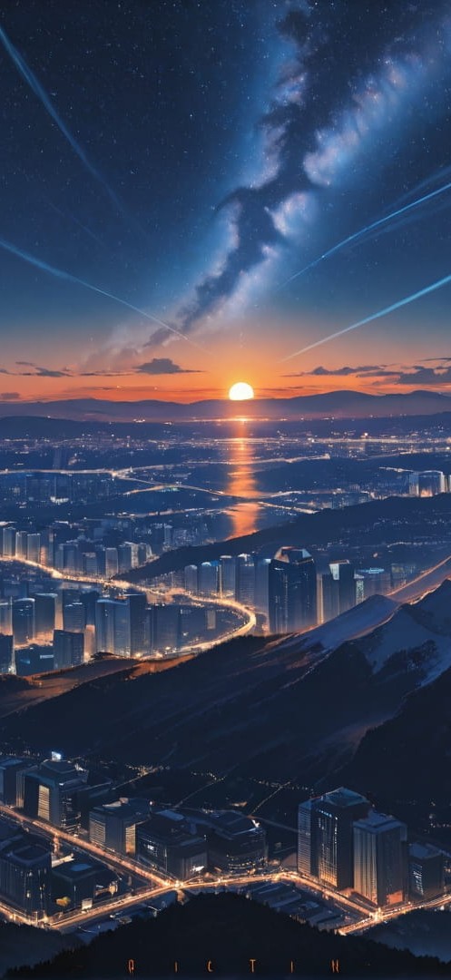 Orange Night City Zenith smartphone wallpaper free download, vertical 16:9 format, Orange, Night, City, Summer 001