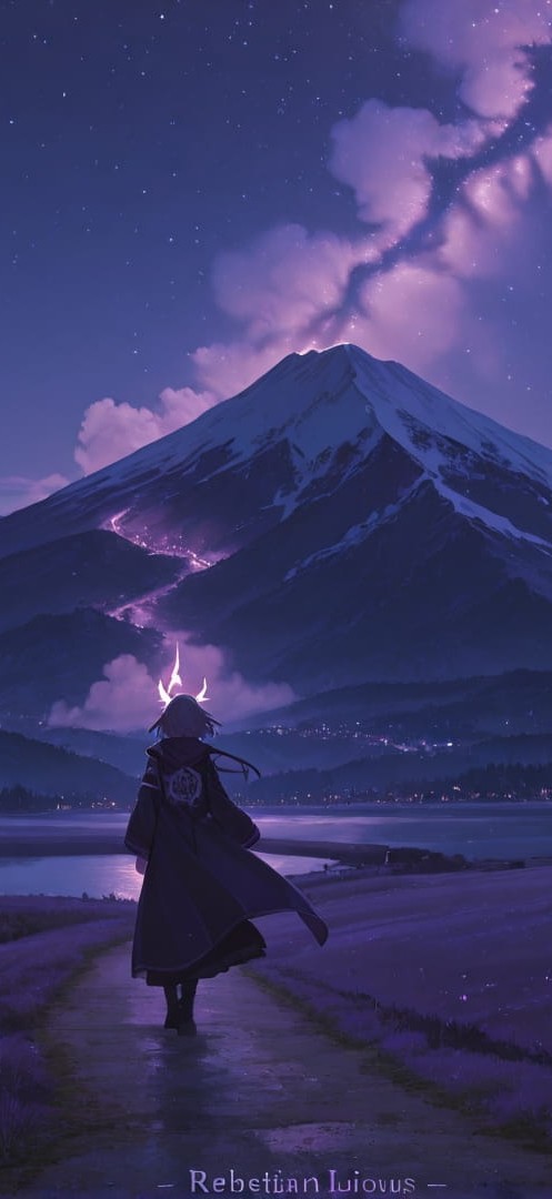 Purple Night Mountain Zinegeist smartphone wallpaper free download, vertical 16:9 format, Purple, Night, Mountain, Spring 001